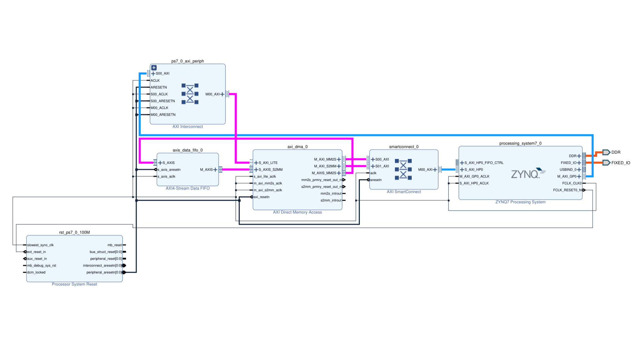Figure 1: The AXI DMA acts as the "mover," bridging the gap between DDR memory and custom logic streams.