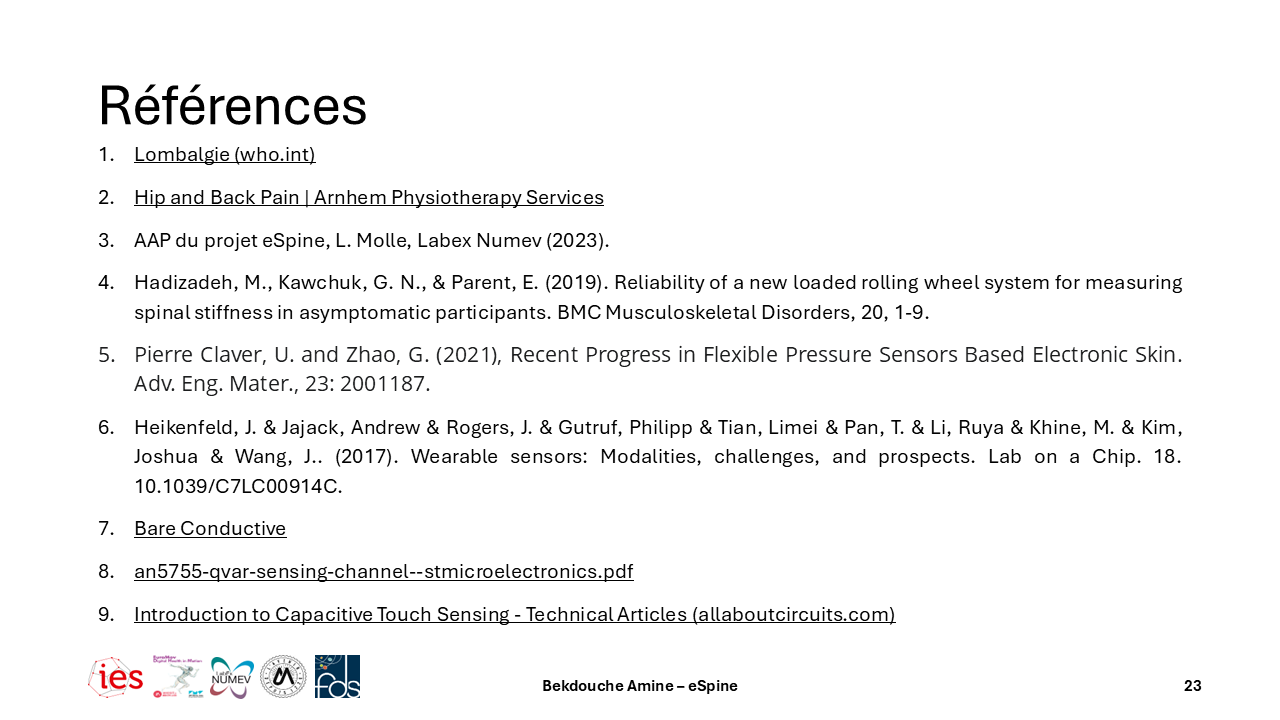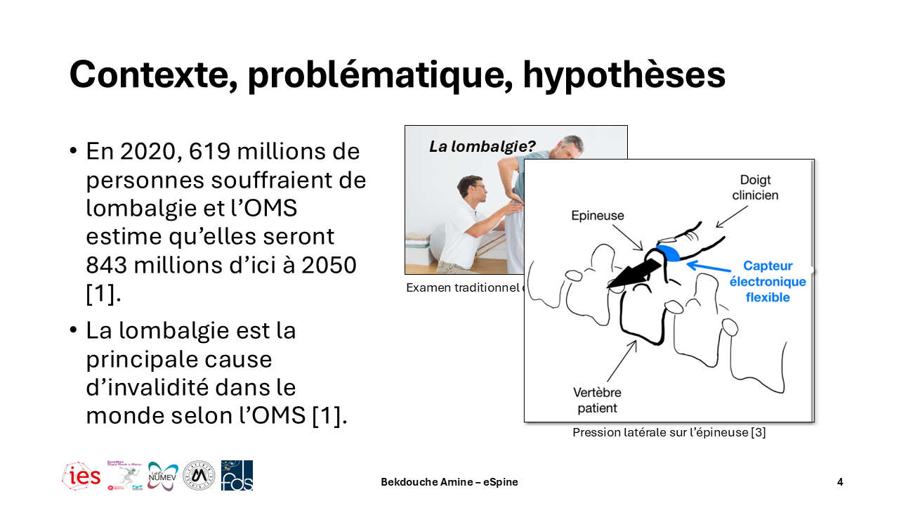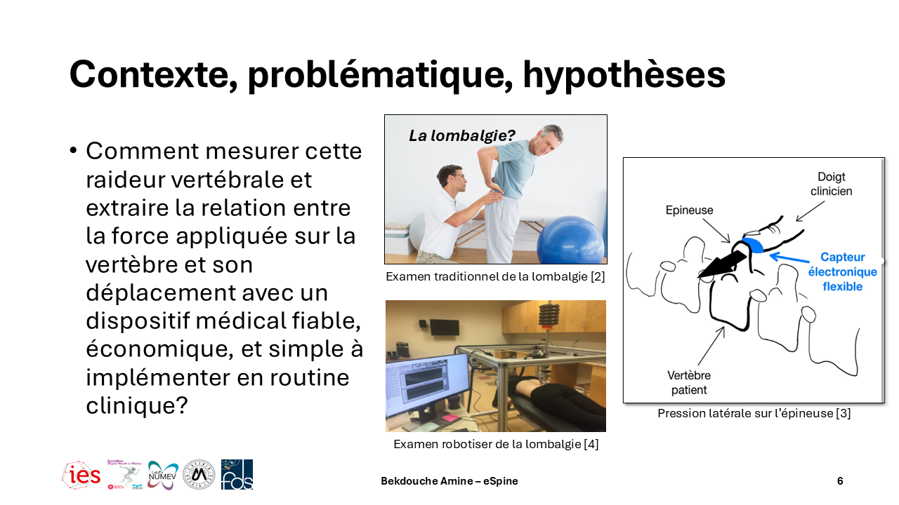 Low back pain is a major public health concern. Current clinical diagnosis relies heavily on manual palpation, a subjective method dependent on the practitioner. This project aims to develop a reliable, flexible sensor to objectively measure spinal stiffness.